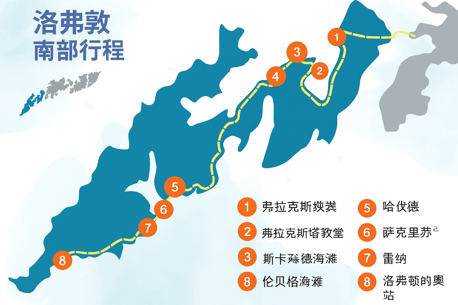 我们提供快速接驳与准时返港服务,让您在有限时间内探索最具代表性的景点:渔村、沙滩与壮丽的海湾风光,一站式轻松体验罗弗敦精华。